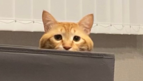 「ぐンバ」(仮)は外の様子をうかがうように