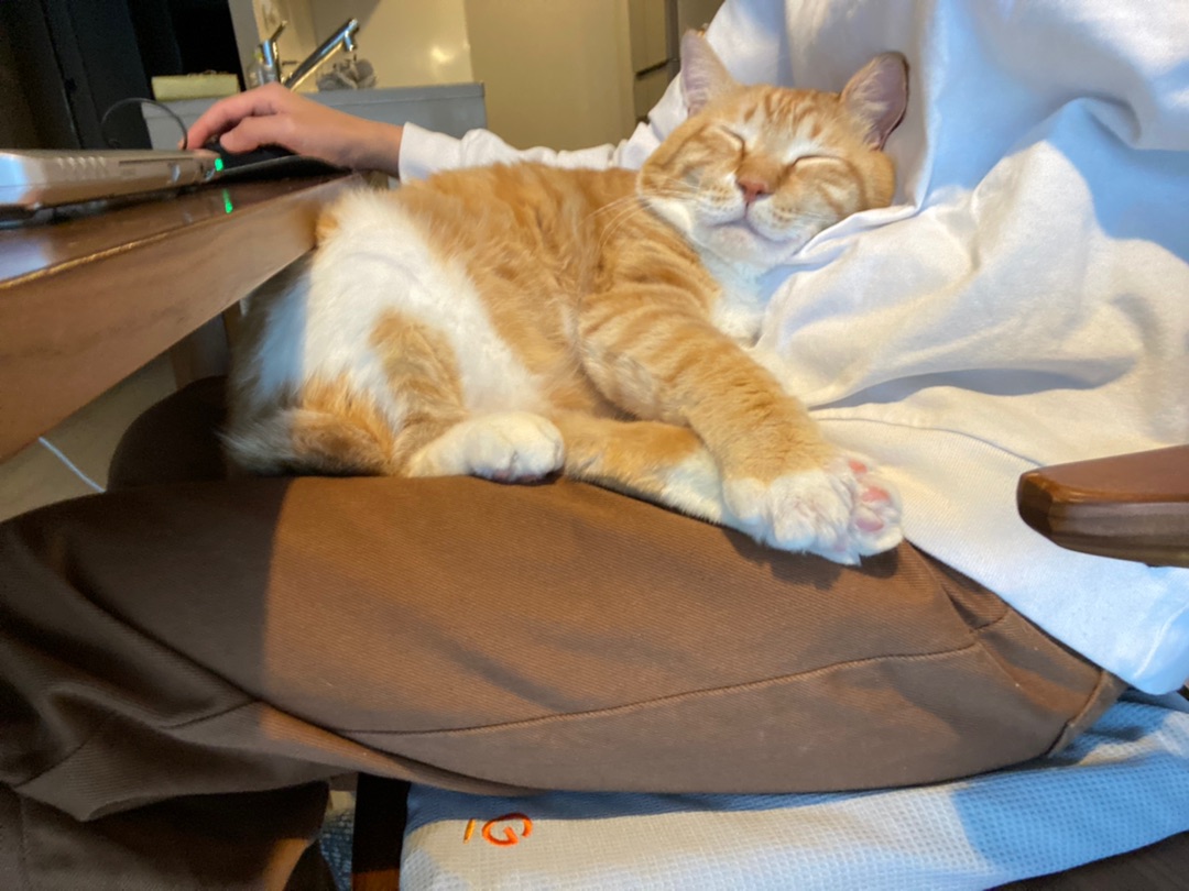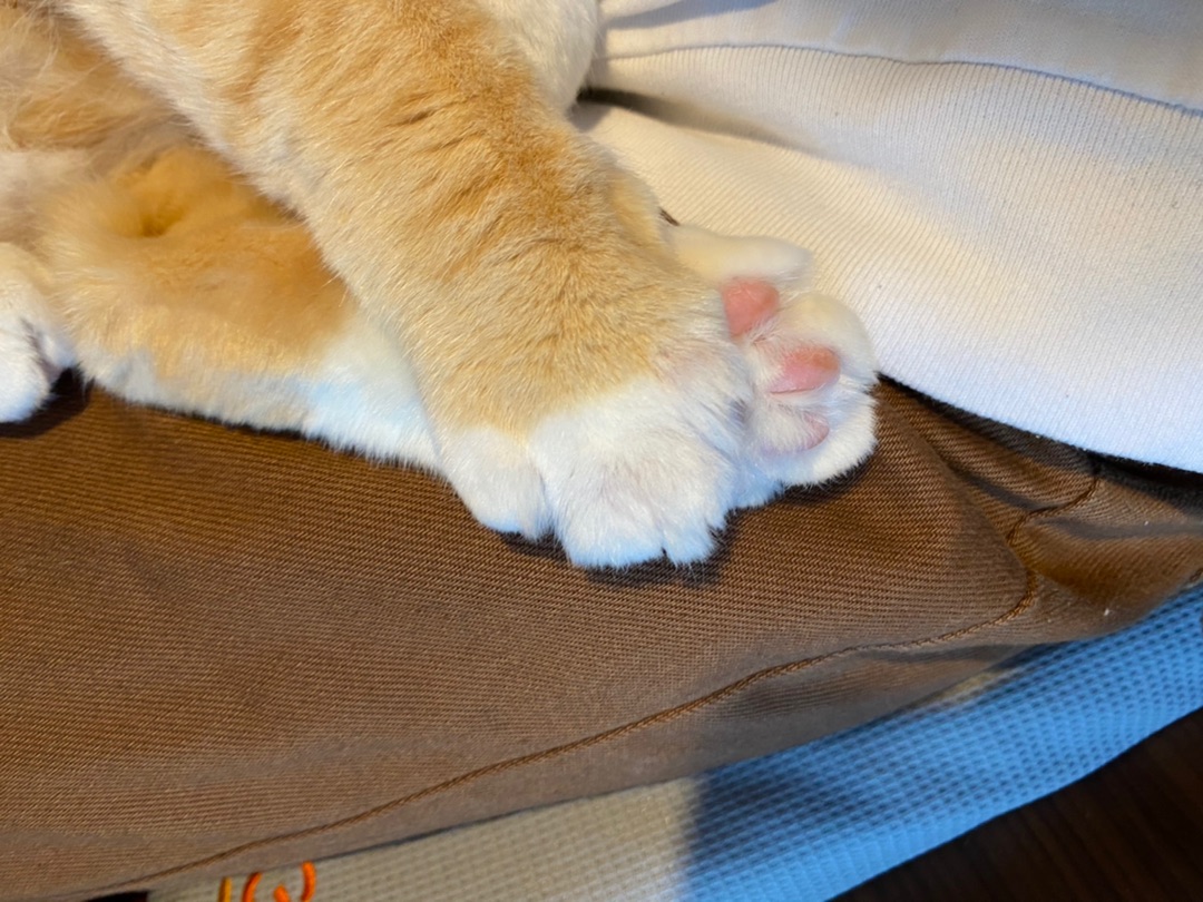 肉球のシワとシワを合わせて幸せの暖をとっています。