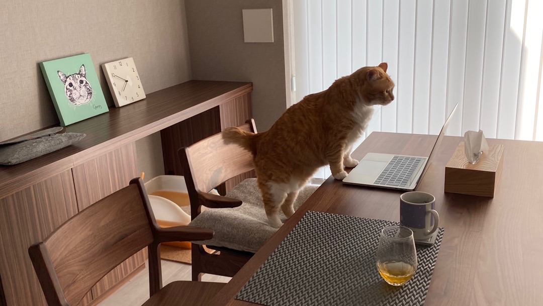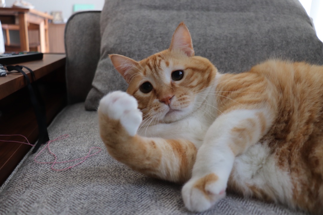 「あ!ネコがソファガリガリしちゃってるから切るね!」