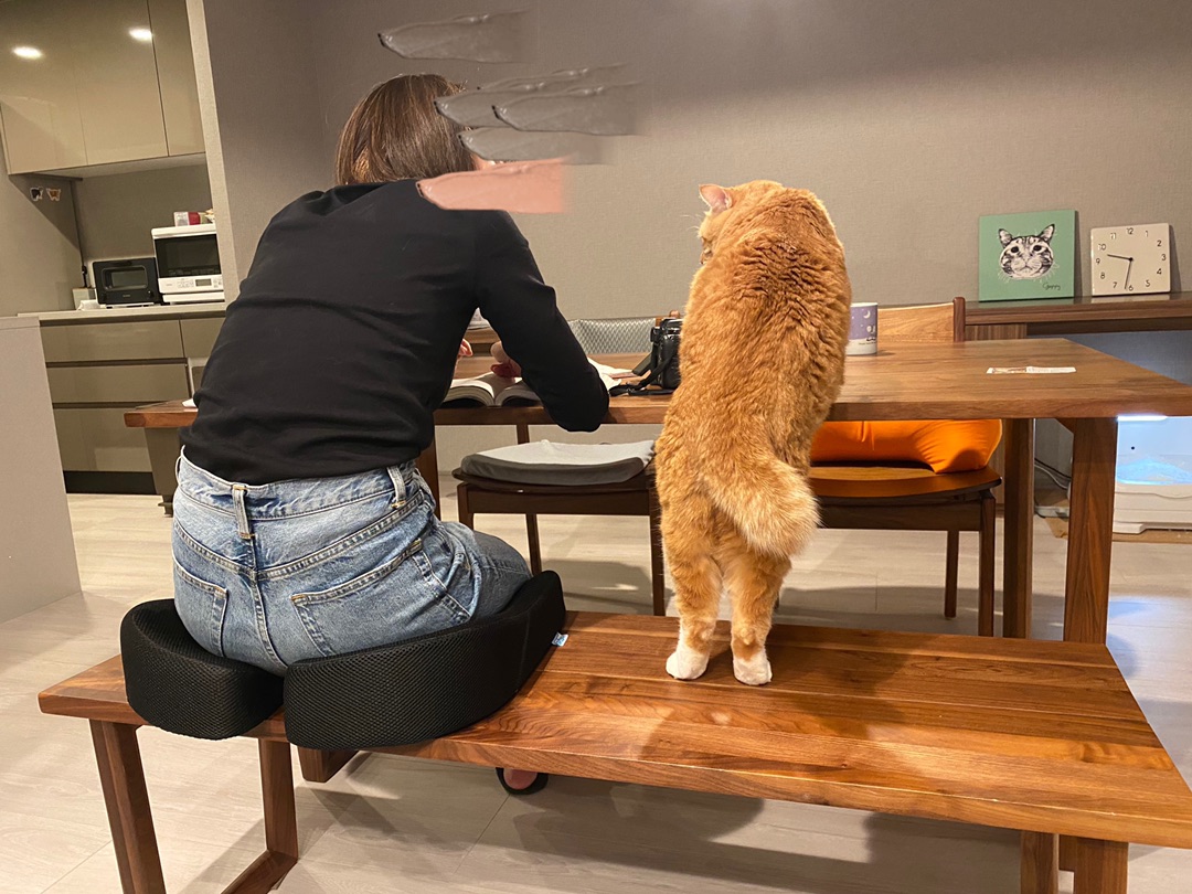 大将のお隣でプレゼンする主さんのお座布団がケツの保護力強そうでどちらの物か気になって気になってあつもより沢山ご飯を食べてしまいます🍚🍚🍚