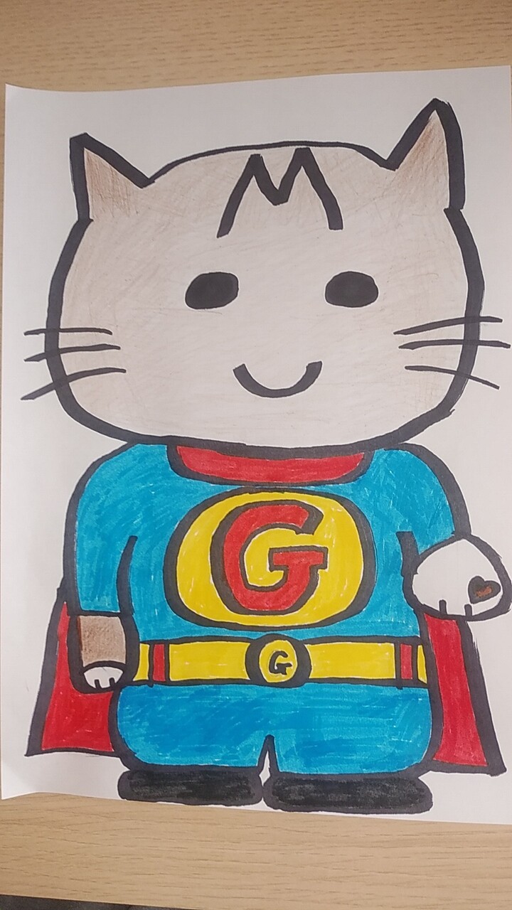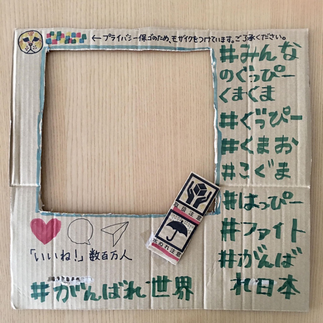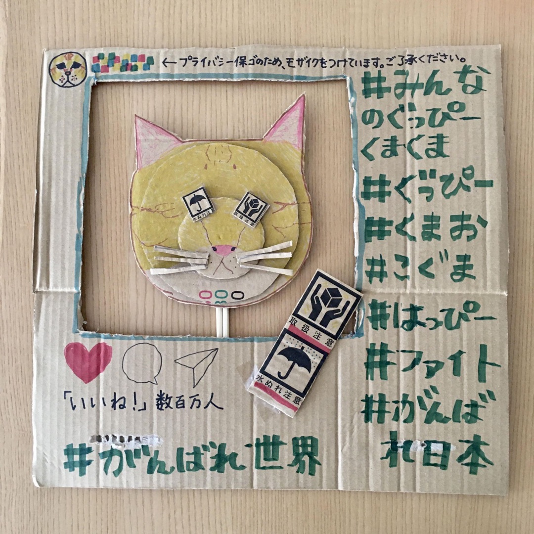 ぐ:エントリーNo.16の「はる」さんのお母さんの作品だ!はるさんの作品と合わせると…僕がインスタに載っている感じになるんだね!段ボールの無駄もなくなって、環境にもよい作品だね。