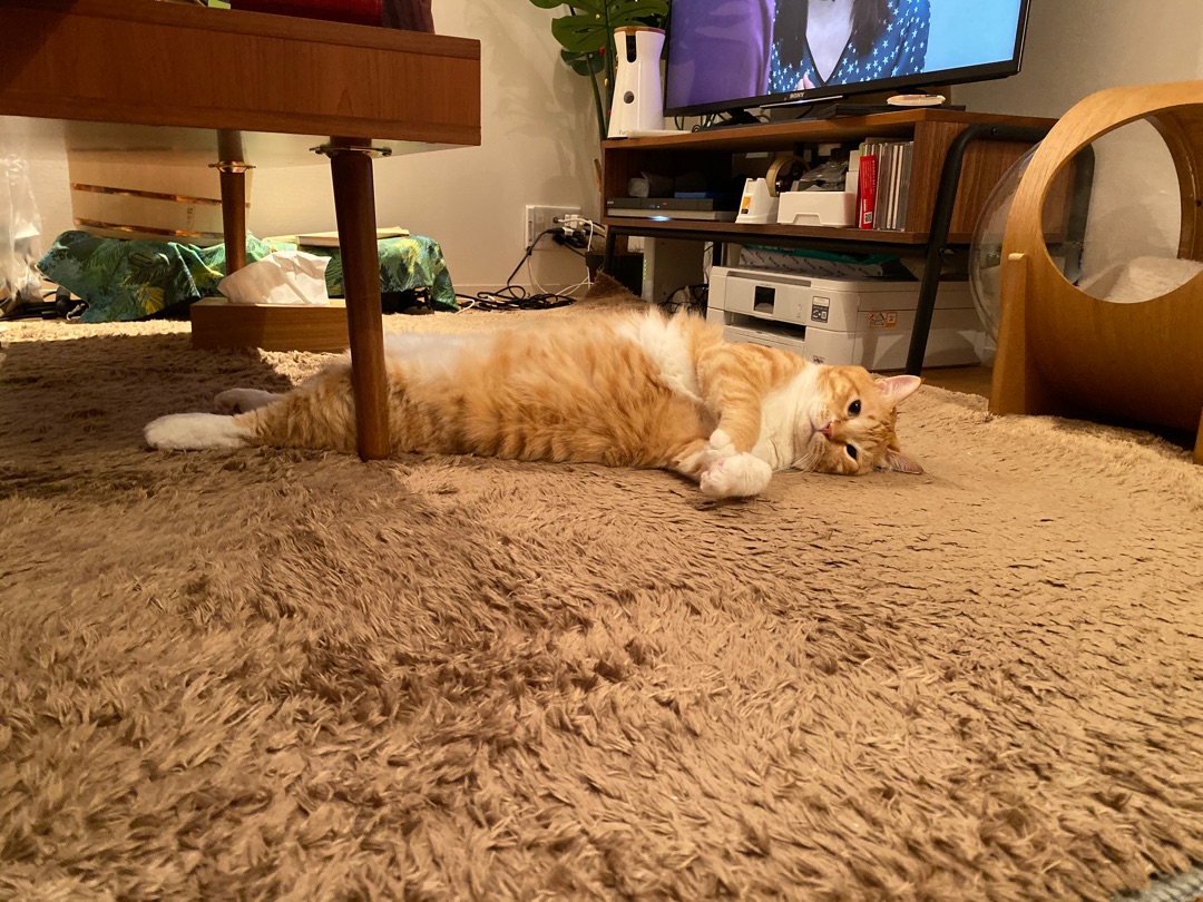 ホットカーペットを付けたら伸びまくっています。ぐっぴーです。