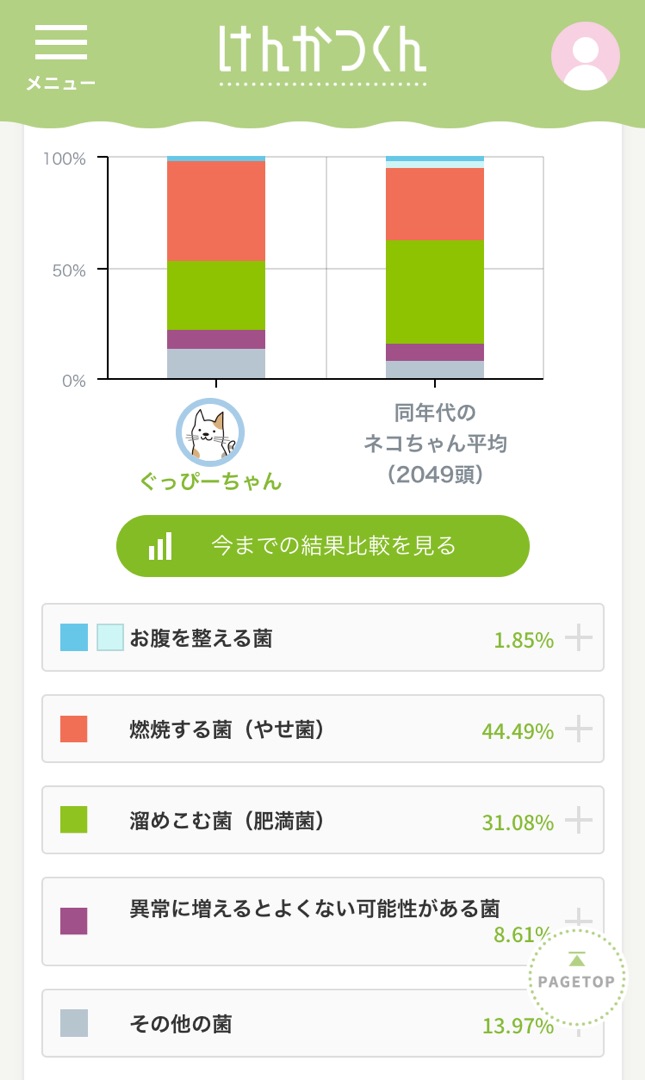 そして分身送り付けたところだったんですね!そりゃすごいタイミングしゅぎる…保護猫さんだと年齢が正確にわからなかったりしまうが、この検査で腸内年齢が出るので、ちょっと安心する…かもしれないです^^