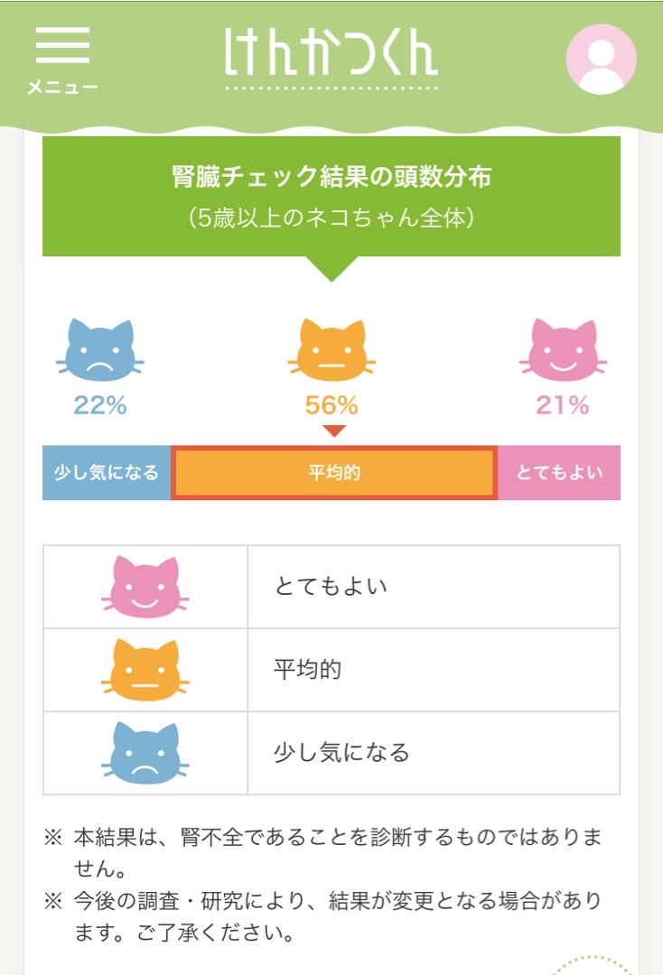 また、猫には多い腎臓病のリスクレベルなどもわかるので、注意していくことができ…