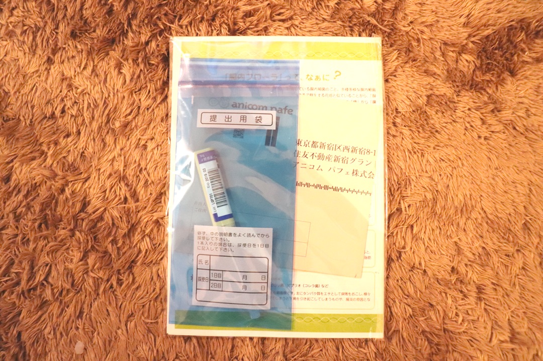 腸内フローラ測定を申し込むと、すぐに自宅に検便キットが届きました。