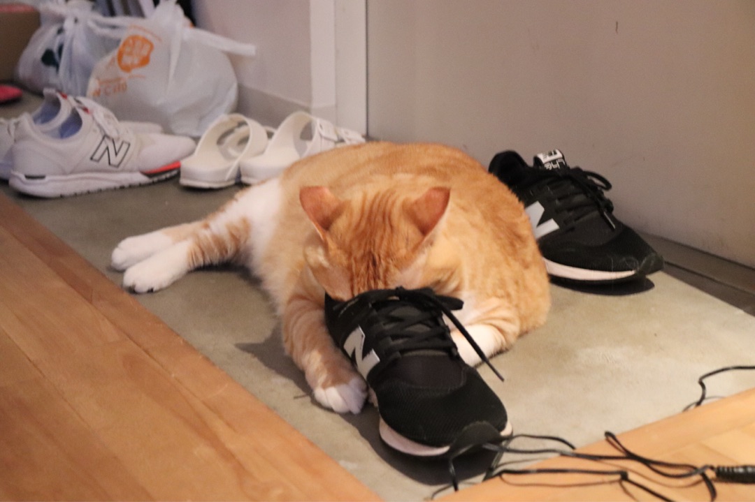 甘えん坊の靴好きなので、靴に顔を突っ込んだその直後に顔を舐めてきたりします…。