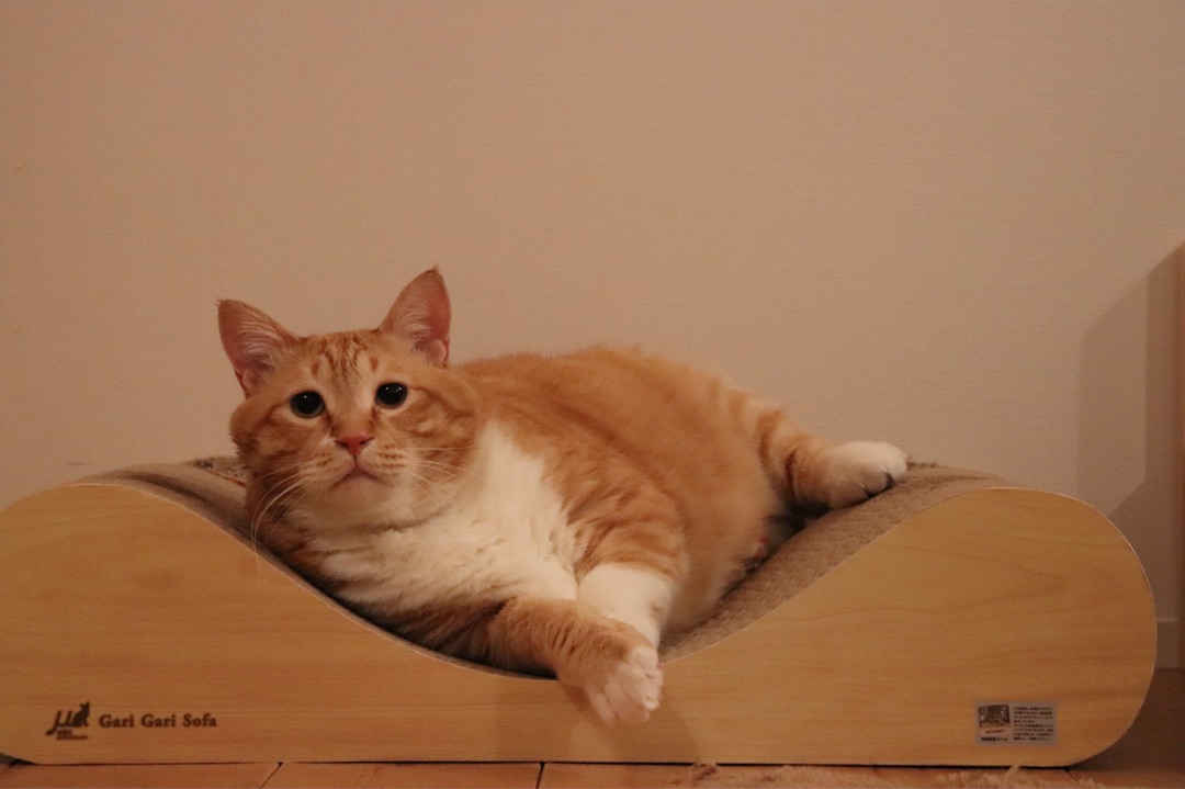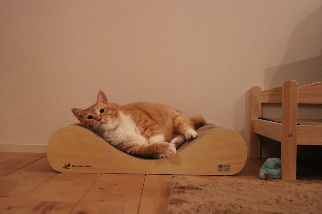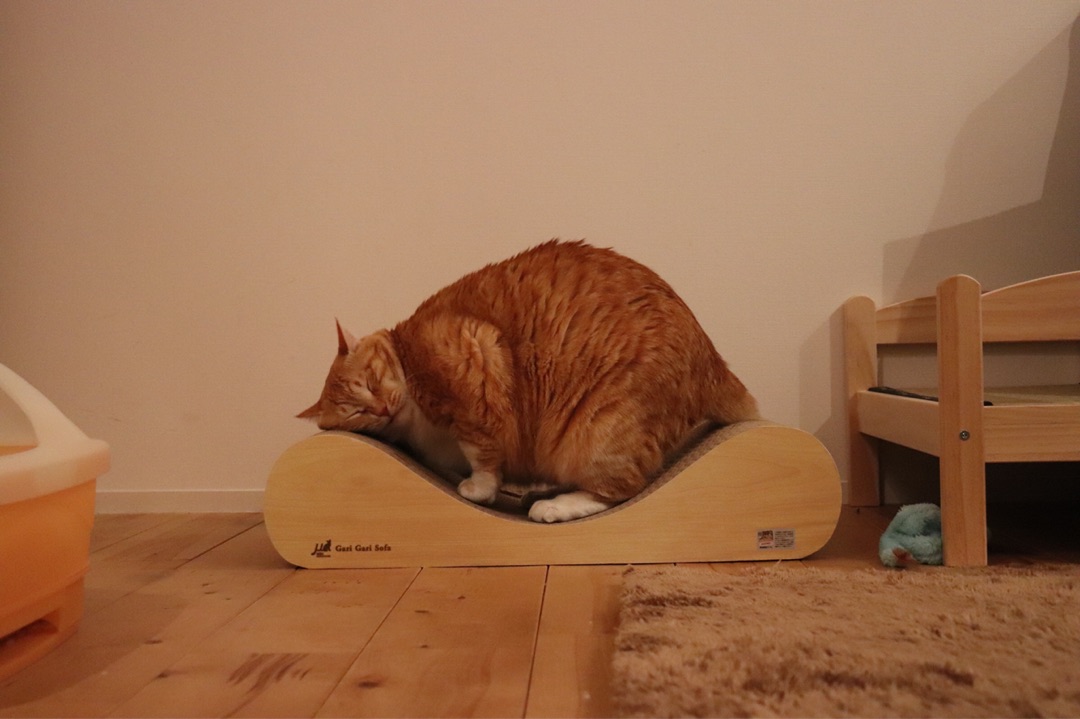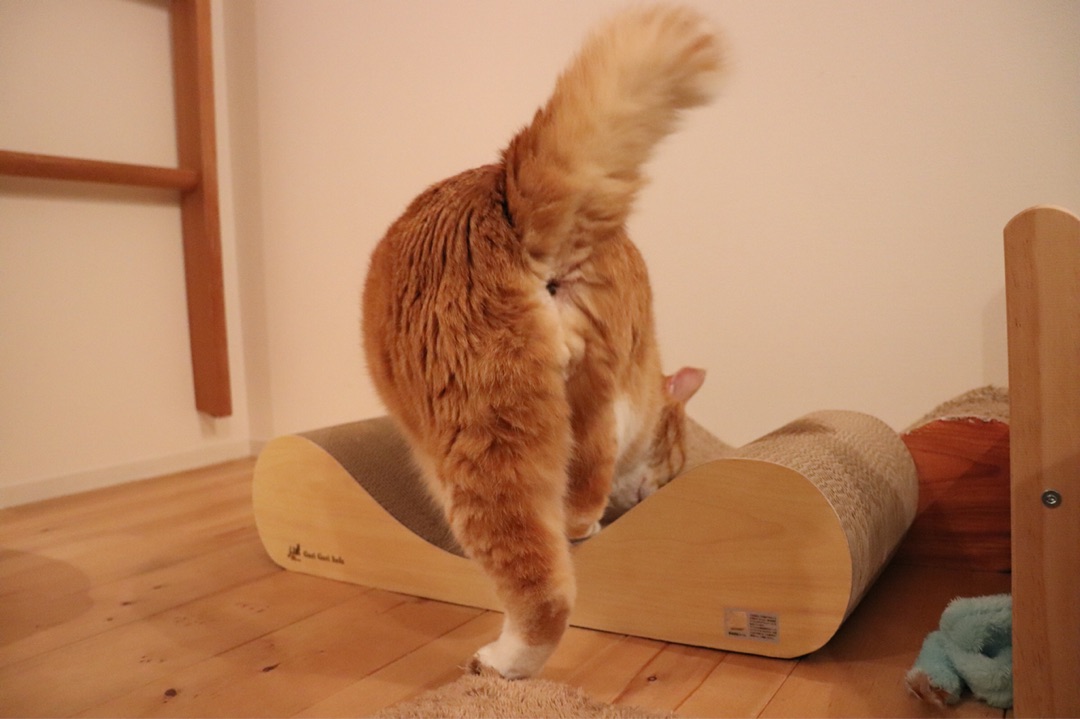 他にもいくつも爪研ぎはあるんですが、やはりこのカーブが良いのだな。という結論に至り、つい先日、私の誕生日に友達がぐぴ山と同じ爪研ぎをプレゼントしてくれました(笑)