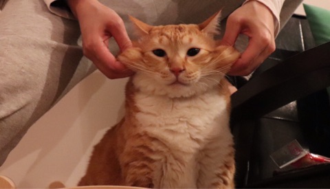 ほほ肉がけっこう大量にあるので、押すと顔が変形することが判明いたしました。笑
