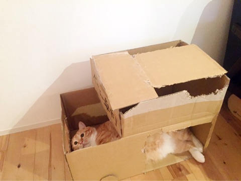 無理だっていうのに、お尻さえ入ればいいぐらいの勢い。ウチの子はイチゴの箱…アレがお気に入りでずっと入ってました。